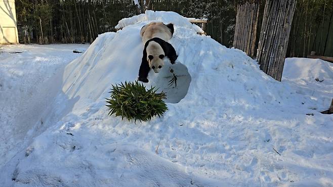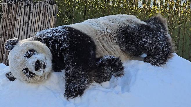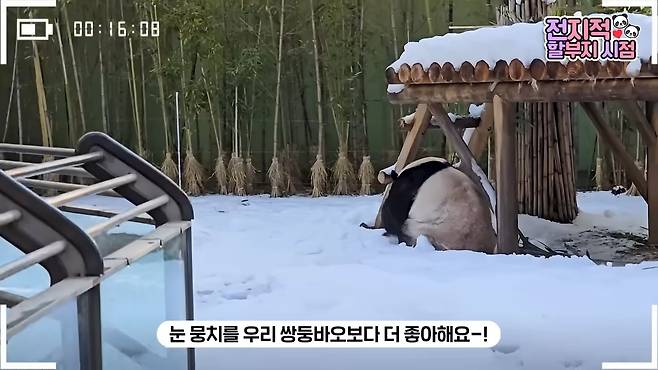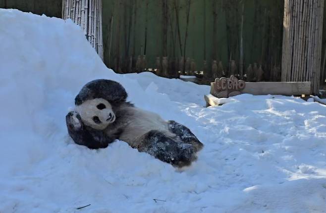 최근에도 러바오의 방사장에 하얀 눈이 수북이 쌓이자, 러바오는 마치 어린아이처럼 신나게 눈 위를 뒹굴며 즐거워했다고 합니다.