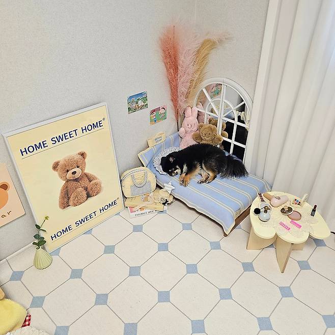 처음엔 집 꾸미기와 홈스타일링, 그리고 펫테리어에 관심이 많아서 강아지 포토존을 만들기로 했어요. 가장 먼저 첫째 강아지인 까꿍이 방을 꾸미기 시작했는데, 점점 그 방에 강아지 용품을 모두 가져다 두고 케어도 하고 사진도 찍고 간식도 주게 되더라고요.