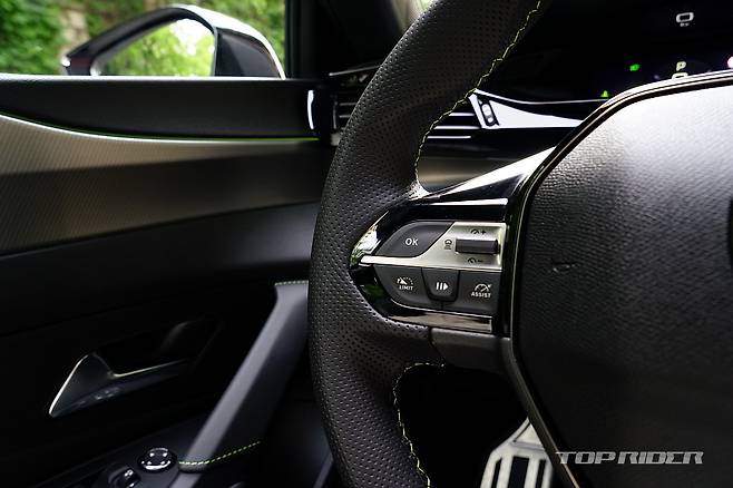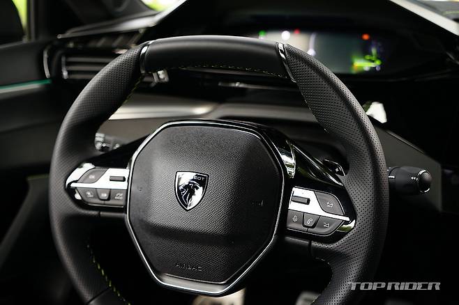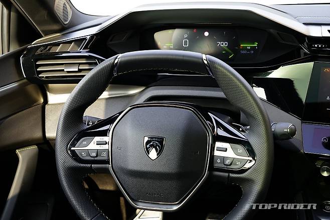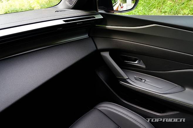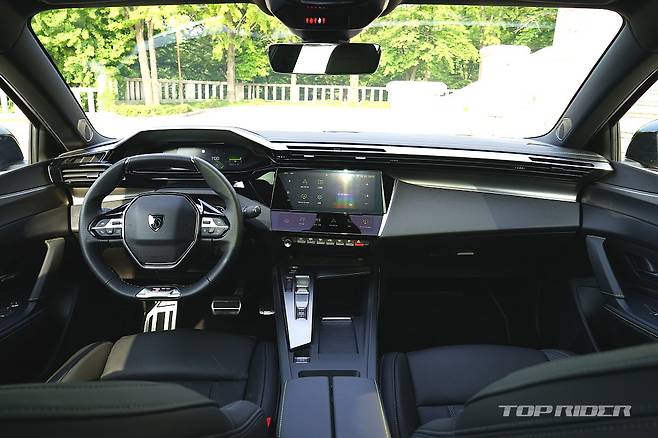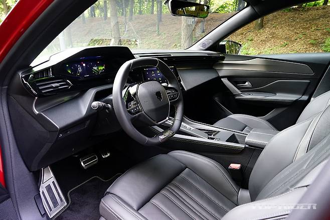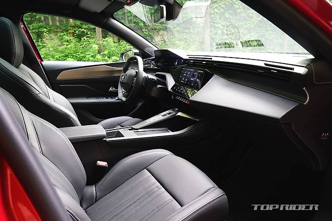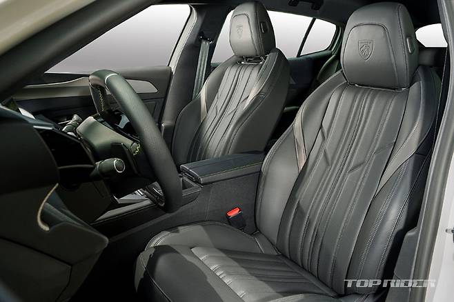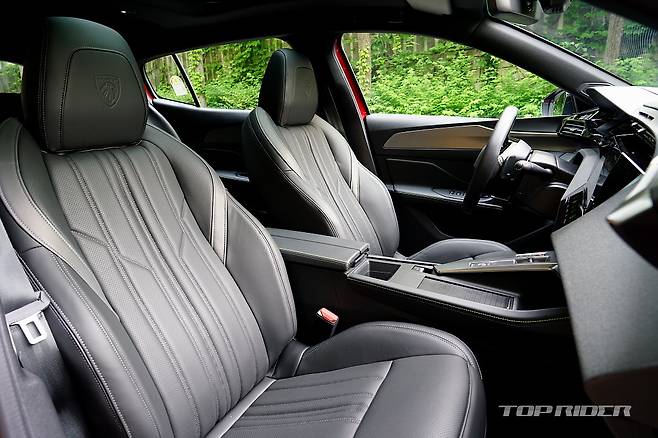 운전석에서의 시트포지션은 세단에 가깝다. 운전자세는 세단, 언더 플로어의 높이는 SUV 스타일로, 안정적이면서 시원한 전방시야를 제공한다. 쿠셔닝이 좋은 두툼한 시트와 헤드레스트의 엠블럼 문장은 프리미엄 브랜드에서도 인색하기 쉬운 구성인데 408에는 기본이다.