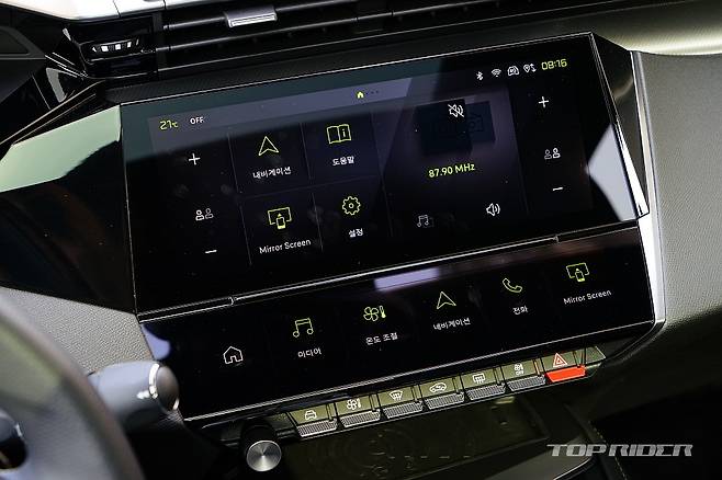 실내는 수평형 대시보드와 헤드업 디지털 계기판, 10인치 인포테인먼트 모니터와 i-토글이라고 불리는 디스플레이 버튼이 분위기를 주도한다. 히든형 에어벤트와 작은 물리 스위치 형태의 전자식 기어레버 등 최신 트렌드를 담았다. 실내 소재도 동급에서는 상위권이다.