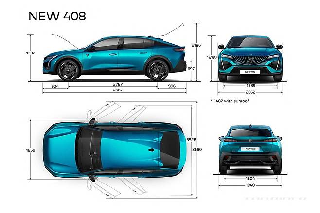 뉴 푸조 408은 푸조가 새롭게 추구하는 세계화와 업마켓 지향 의지를 담아, 기존에는 볼 수 없었던 새로운 외관 디자인을 채택하고, 덩치를 키웠다. 과거 프랑스 자동차 제조사의 특징인 작은 차체를 벗어났으며, 이제는 상위 모델을 넘보는 크기로 차체와 실내공간을 키웠다.