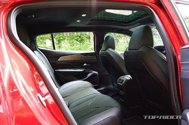 특히 2열 공간이 꽤나 여유로운데, 레그룸은 물론 헤드룸까지 유럽산 중형세단에 가까운 설정이다. 등받이 기울기도 무난한 수준으로, 2열 승객 탑승은 물론 카시트 거치까지 고려해야 하는 패밀리카로도 부족함이 없다. 차량 특성상 승하차가 쉬운 것도 푸조 408의 강점이다.