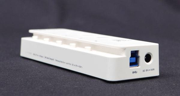 호스트(PC)와의 연결용 업스트림 포트는 USB 3.x Type-B 구성이고, 유전원 허브로 동작할 때는 12V - 3.5A 연결로 최대 42W 전력을 공급받는다. 각 USB 포트에는 독립적으로 전원을 On/ Off할 수 있는 버튼이 있어, 필요에 따라 연결된 USB 케이블을 뽑지 않고도 장치의 연결을 간단히 차단할 수 있다.