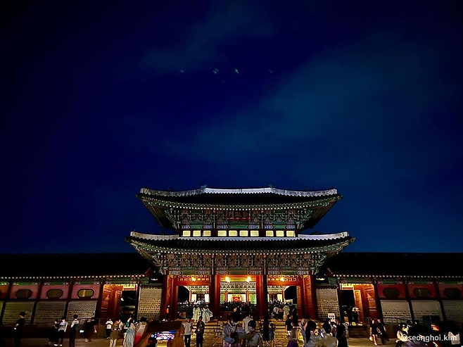 경복궁 야간개장은 고즈넉한 궁궐 분위기와 은은한 조명이 어우러져 마치 옛 왕조 시대로 돌아간 듯한 느낌을 줍니다. 특히 근정전 앞에서 찍는 사진은 멋진 인생 사진을 남길 수 있는 명소입니다. 궁궐 내부의 다양한 전각들이 조명에 비춰지는 모습은 낮과는 또 다른 매력을 자아냅니다.