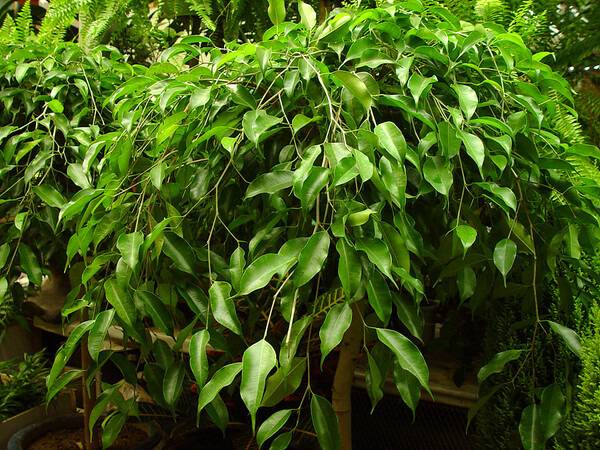 동남아 열대나 아열대가 고향인 상록교목으로 자생지에서는 20m까지 자란다. 습도가 높으면 줄기에서 나는 기근들이 비처럼 내리는 모습이 압권이다. 잎 무늬종도 있어 공간장식에 큰 몫을 한다.