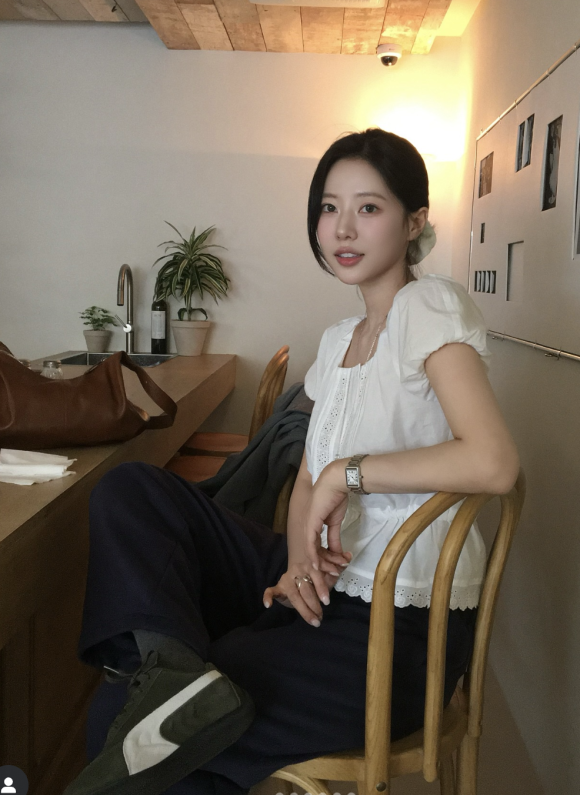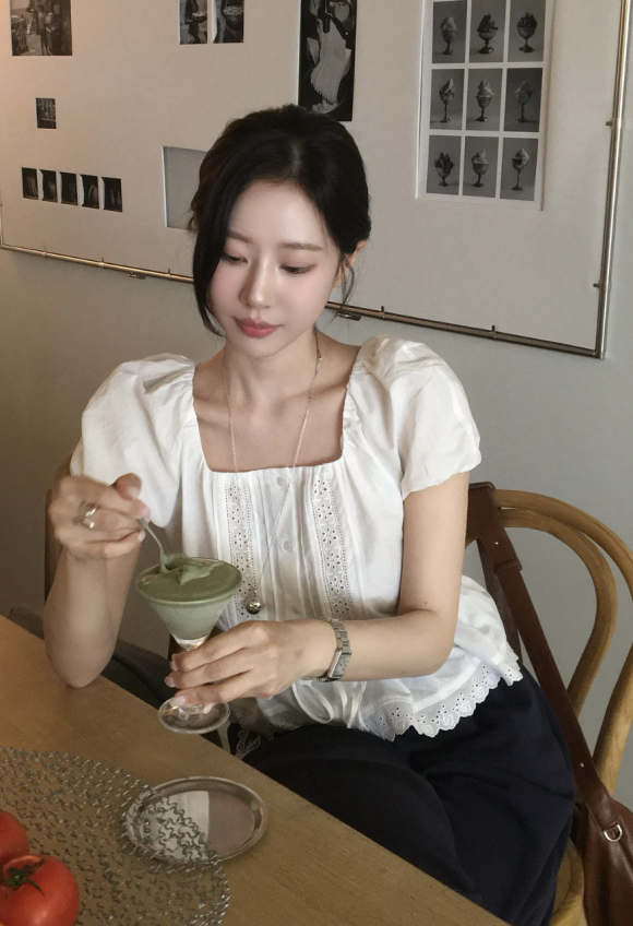 여름 시즌에 딱 맞는 고민영의 레이스 블라우스는 로맨틱한 감성과 실용성을 모두 갖춘 ‘여친룩’의 대표 아이템이다.