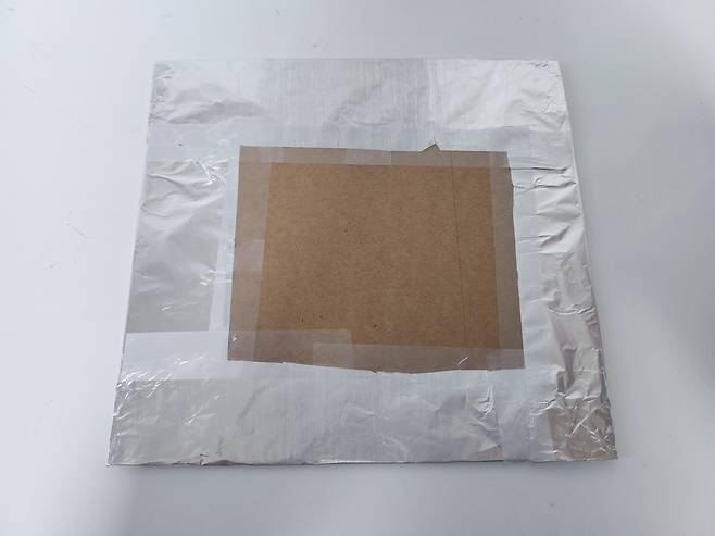 은박지가 풀어지지 않도록 테이프를 붙여 고정해주세요.