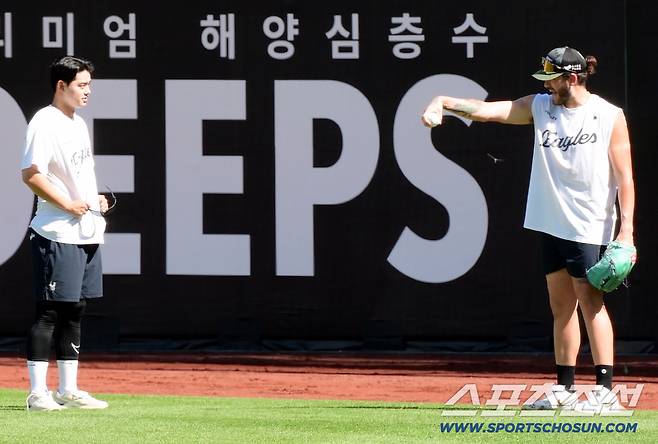 문동주와 폰세가 오후 2시부터 그라운드에 나와 캐치볼과 러닝 등 투수조 훈련을 소화했다.