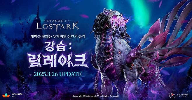 스마일게이트RPG는 MMORPG '로스트아크'가 오는 5월까지 한정된 기간 동안만 즐길 수 있는 신규 엔드 콘텐츠 '강습 림레이크'를 업데이트했다고 26일 밝혔다.