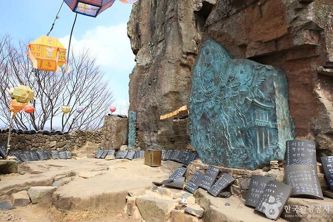 약사전 내부 암벽에는 마애여래입상이 새겨져 있습니다. 전해지는 이야기로는 원효대사가 손톱으로 새겼다고 전해지는데, 사실 여부를 떠나 이곳이 얼마나 오랜 신앙의 공간이었는지를 짐작하게 합니다. 인공적인 장엄함보다, 바위와 함께 존재해 온 불상이 주는 담담함이 더 깊은 인상을 남깁니다.
