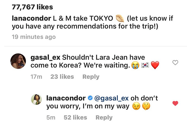 트위터에서 한국에 올 계획이 없냐는 질문에 라나 콘도르는 "오 걱정하지마 갈거야"라고 답해 반가운 소식을 전했습니다.