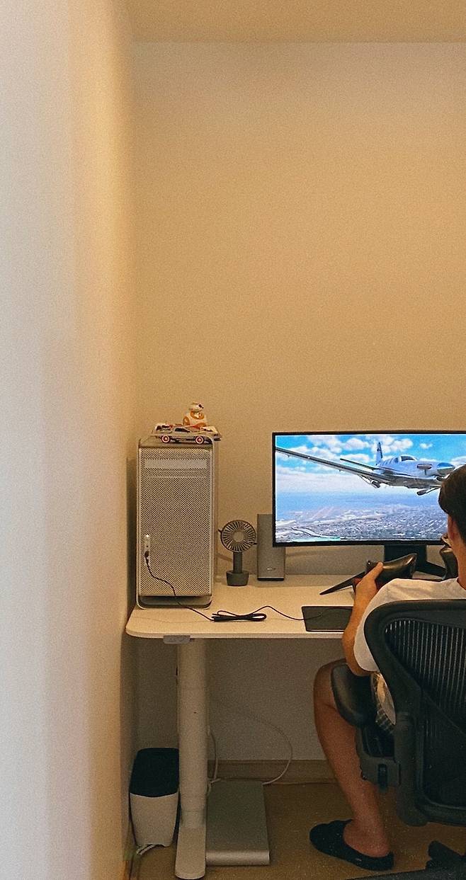 남편의 책상은 전자기기가 깔끔하게 정리되어 있어요.