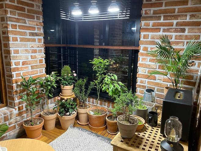 겨울에는 적당히 추운 온도에서 월동이 필요한 화분들의 공간으로 다시 바꼈구요. (남편이 실내등도 설치해주었어요.)