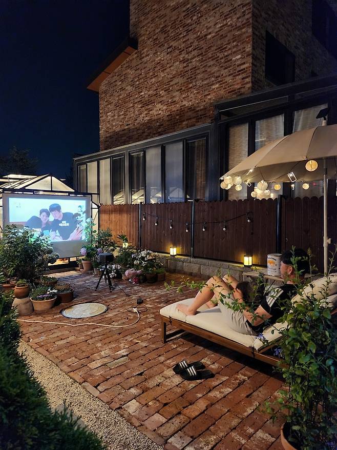 선선한 날씨에는 옆마당에서 영화나 예능을 보면서 밤날씨를 만끽 하기도 해요.