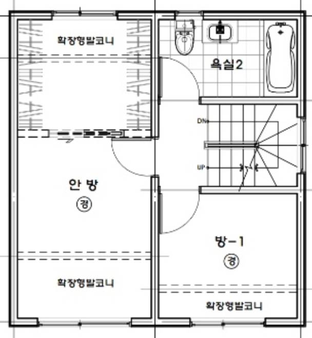 2층은 안방과 옷방, 손님방, 욕실로 구성되어 있어요. 작은 평수지만 참 알찬 구성의 공간이에요.