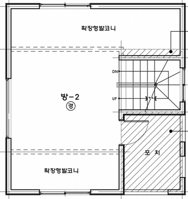 3층은 확장해서 4평의 공간을 추가로 생겼어요. 그래서 크게 쓰는 공간이 한 층은 있었으면 좋겠다는 생각에 포치 사이즈를 줄이고 실내를 늘렸어요. 대부분의 공간은 부부의 홈오피스로 쓰이고 아파트의 베란다 같은 개념의 포치, 남편의 게임방으로 구성되어 있어요.