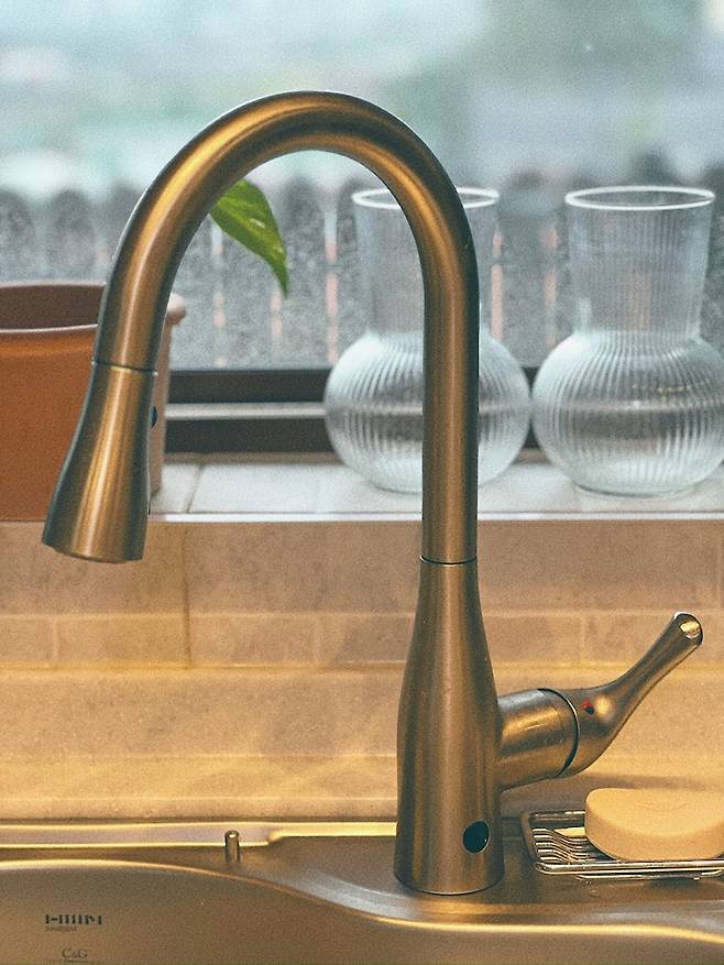 수전은 기본 수전이 코브라 수전이였는데, 사용하다보니 수전을 지탱해주는 부분이 힘이 떨어지더라구요. 그래서 센서 식 수전으로 교체했어요.