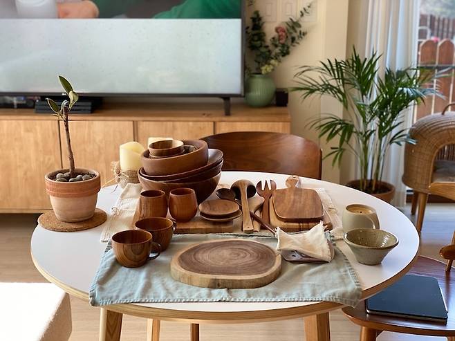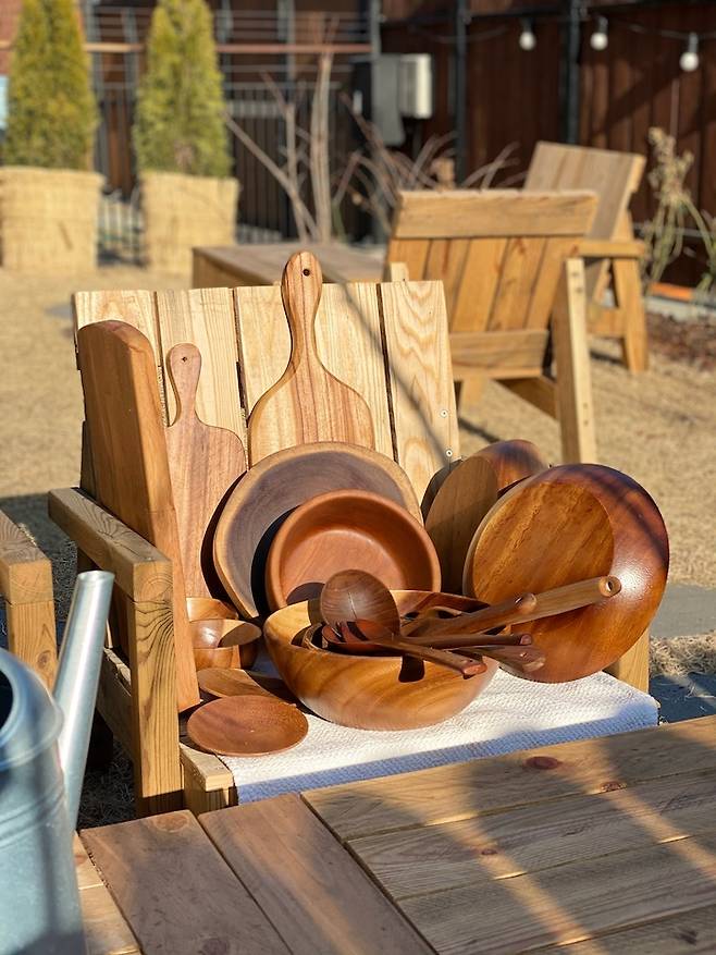 나무 식기를 좋아해서 나무 도마, 그릇들이 많은 편이에요. 나무 식기는 식기세척기에 넣을 수 없고 상하기 전에 빨리 설거지를 해야하는 불편한 점이 존재하지만 나무에서 주는 분위기를 포기할 수 없더라구요.
