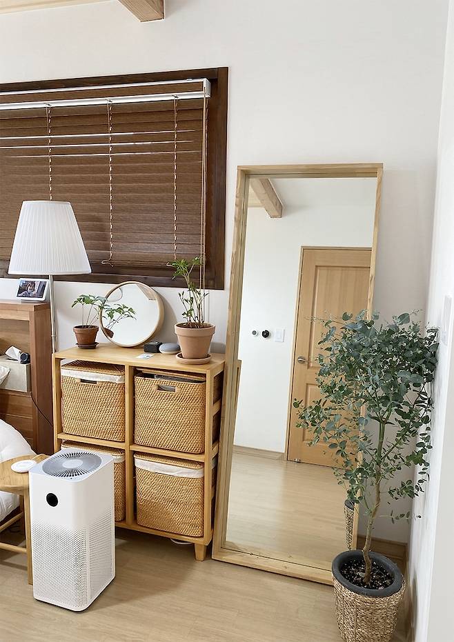 원래 안방에 있던 전신 거울을 안마 의자 때문에 손님방으로 옮겼어요. 덕분에 방이 더 환하고 넓어 보이는 효과를 가져왔어요.