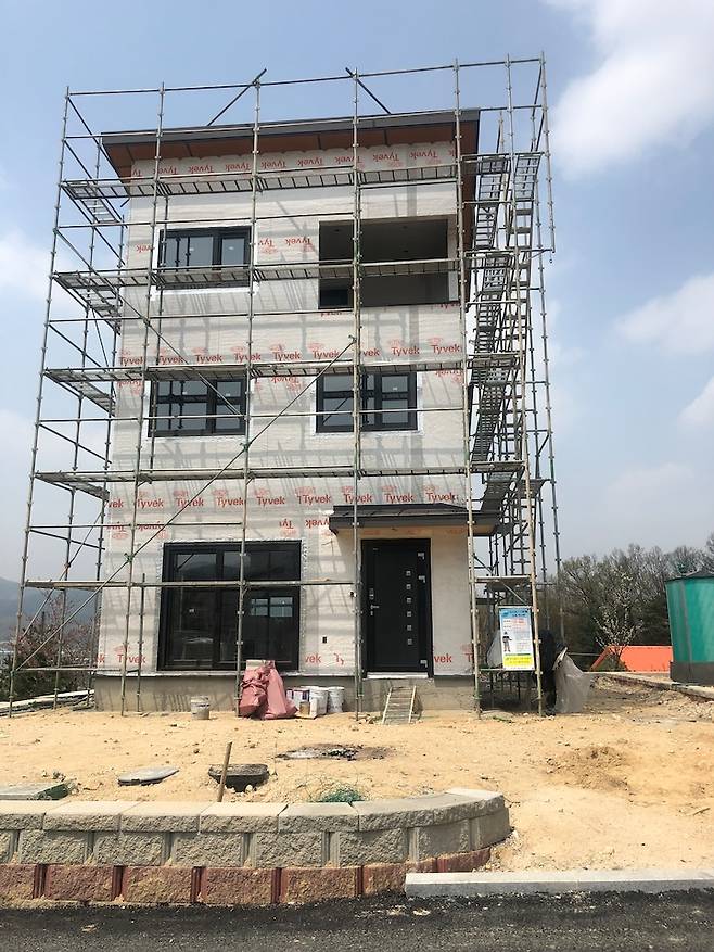 벽돌 외관까지 거의 다 지어진 모습이에요.