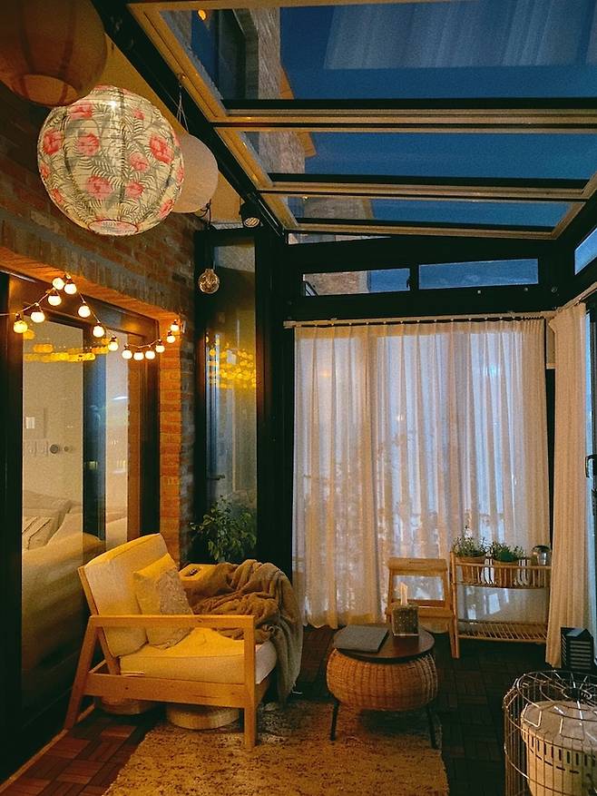 썬룸도 야외 공간이나 마찬가지라 너무 덥고 추우면 사용하기 힘들어요. 하지만 날씨가 좋을 때는 천국 같은 곳이랍니다.