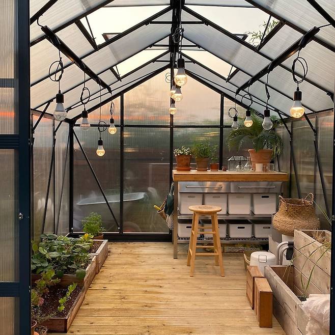 온실 안에는 가드닝에 필요한 용품과 월동이 끝난 식물들을 들여놔요.