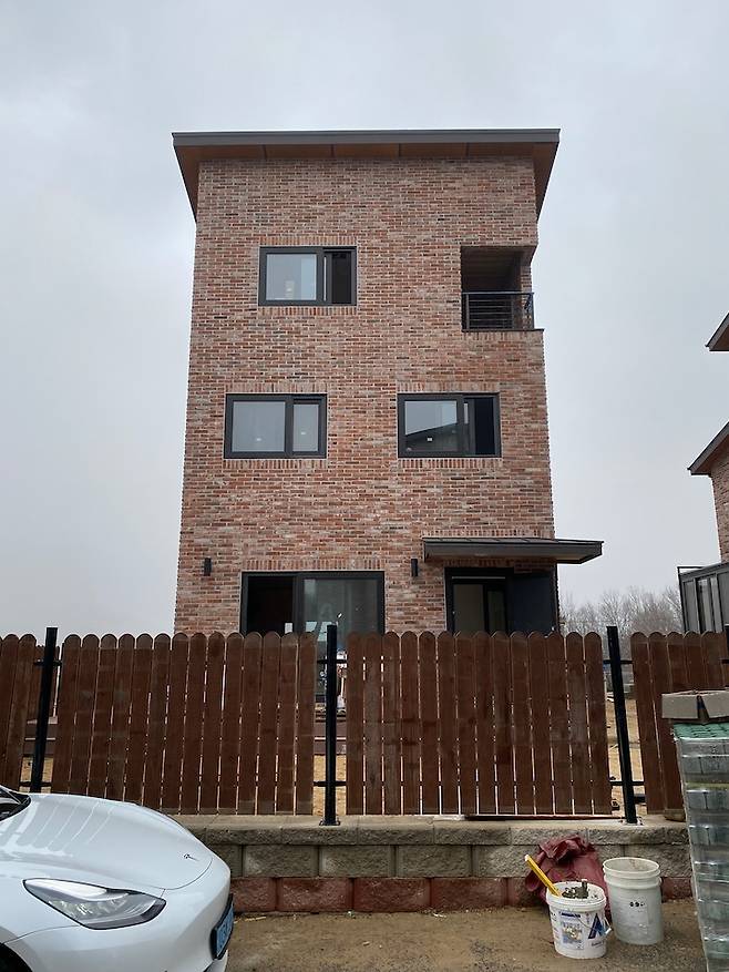 벽돌 외관까지 거의 다 지어진 모습이에요.
