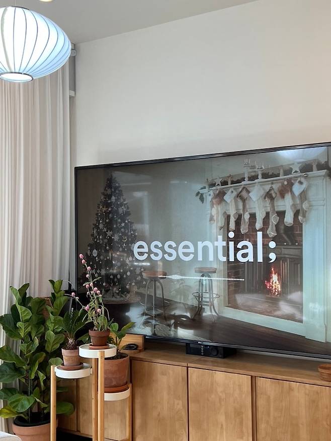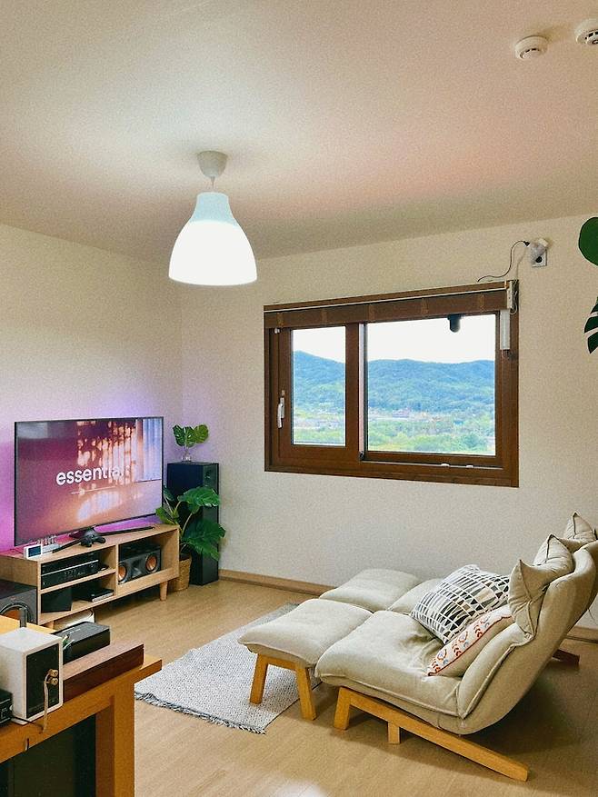식탁을 옮기고 가장 좋은 점은 티비를 보면서 식사를 할 수 있다는 점이에요. 저희 부부는 유난히 영상이나 음악 틀어두는게 습관 같아서 식사를 할 때도 재미있는 영상을 틀어두거든요. 밥 먹으면서 같이 보는 영상에 대해 얘기도 하고 대화 주제가 풍부해지는 것 같아요.