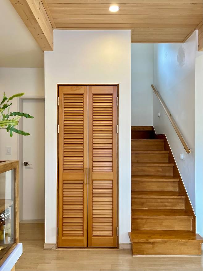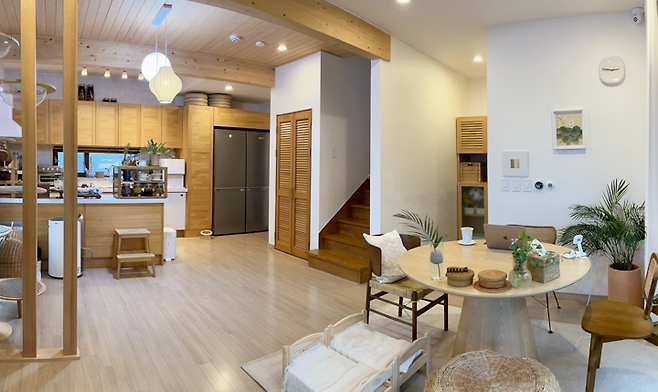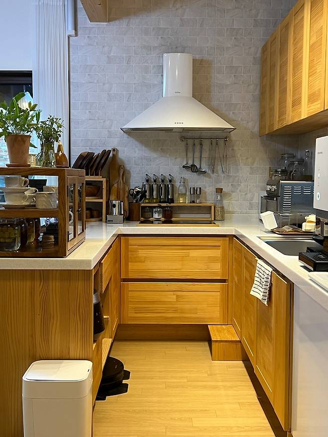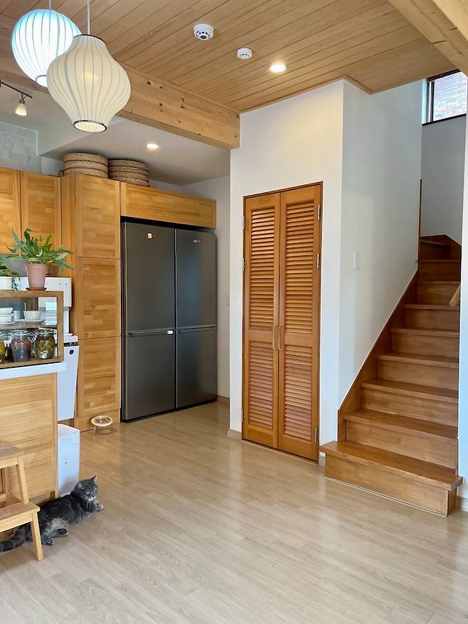 원래 나무 느낌의 가구를 무척 선호하는 편인데, 이 집은 기본적으로 주방 가구, 실내 마감 인테리어에 목재 사용을 많이 하는게 컨셉인 게 마음에 들었어요.
