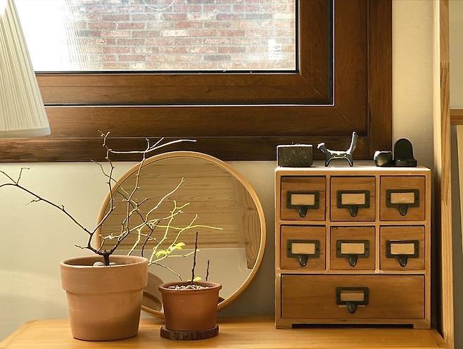 그리고 아주 넓지는 않지만 'ㄱ' 모양의 마당을 가지고 있어서, 해의 방향에 따라, 입맛에 맞춰 즐길 수 있는 장점이 있어요.부부 모두 재택 베이스로 근무하다 보니 많은 시간을 집에서 보내게 됐고 저희의 생활 패턴에 맞도록 구성하게 되었어요.