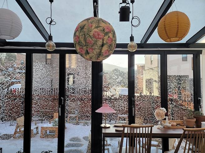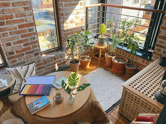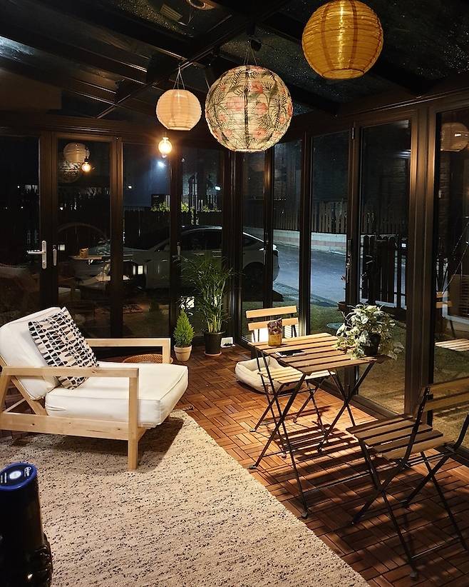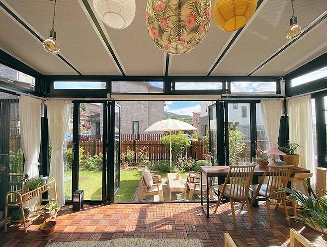 썬룸도 야외 공간이나 마찬가지라 너무 덥고 추우면 사용하기 힘들어요. 하지만 날씨가 좋을 때는 천국 같은 곳이랍니다.
