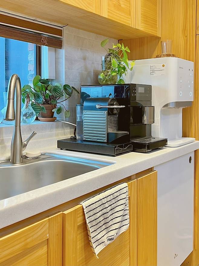 정수기 옆은 에스프레소 머신과 캡슐 커피 머신이 있어요. 전 캡슐 커피를 선호하고 남편은 에스프레소 머신을 선호해서 2대를 다 두게 됐어요.