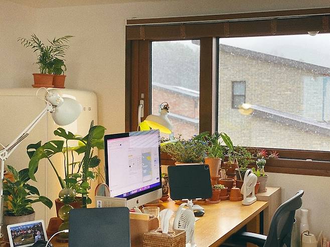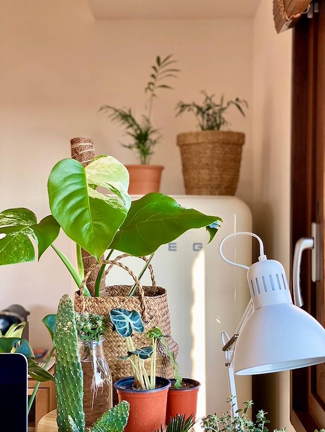 전 식물을 좋아해서 제 책상 뒷자리는 항상 식물이 있어요.