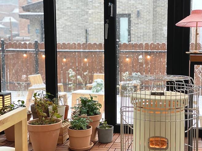 눈 오는 날은 난로를 켜고 구경할 수 있어요.