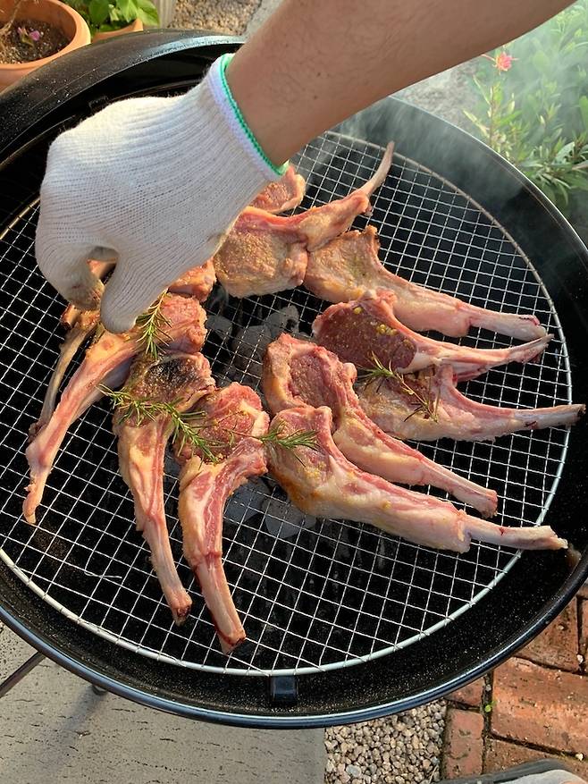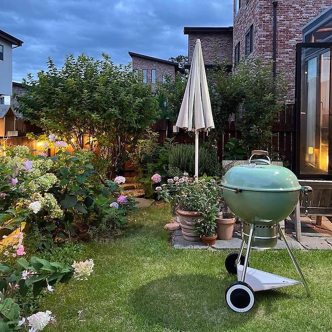 바베큐 파티, 모임은 앞마당 보다는 면적이 넓은 옆 마당에서 많이 해요. 꽃 보면서 먹는 고기는 꿀맛이랍니다.