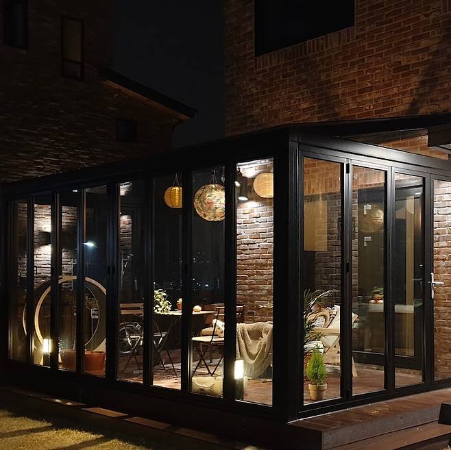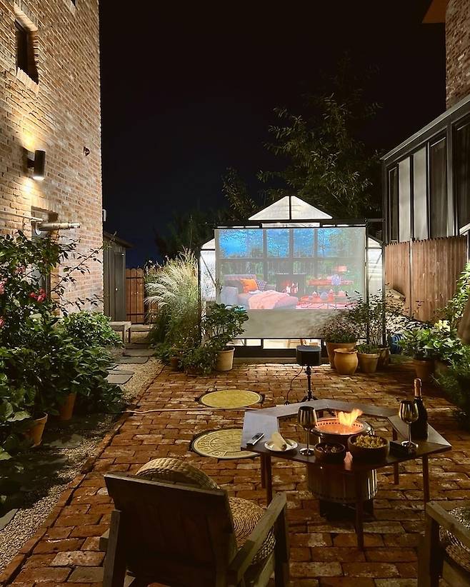선선한 날씨에는 옆마당에서 영화나 예능을 보면서 밤날씨를 만끽 하기도 해요.