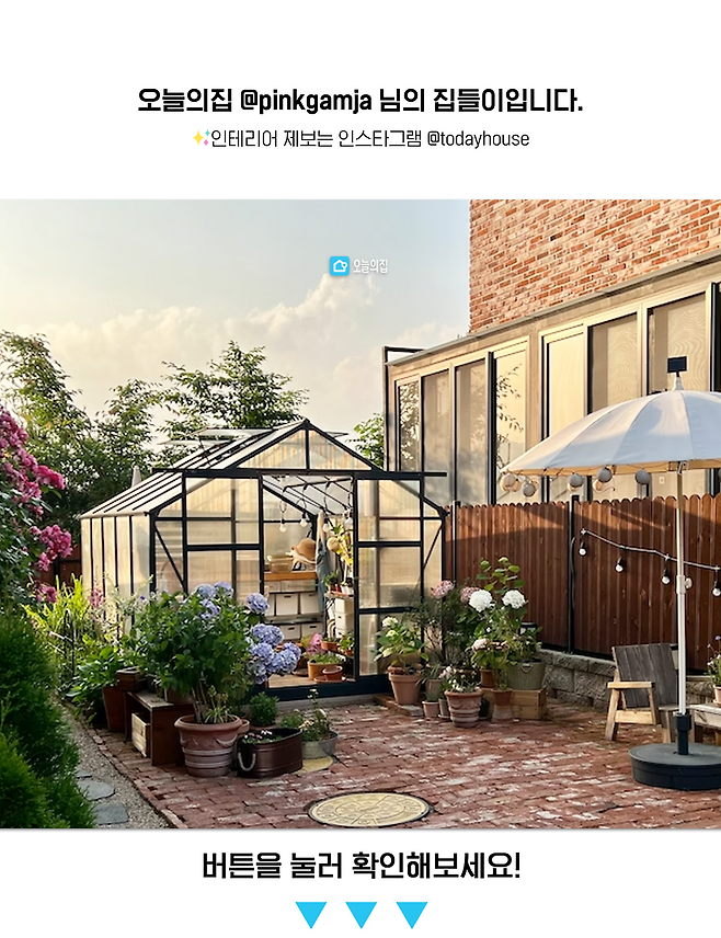 저희는 아파트에서는 절대 누릴 수 없는 것들을 정원 있는 집에 이사와서 만들고 느끼며 살아가고 있어요. 앞으로도 많은 아이디어와 가꿈으로 저희만의 재미를 또 찾아가 보려고 합니다. 집들이 구경해주신 분들에게도 영감이 되었으면 좋겠습니다.