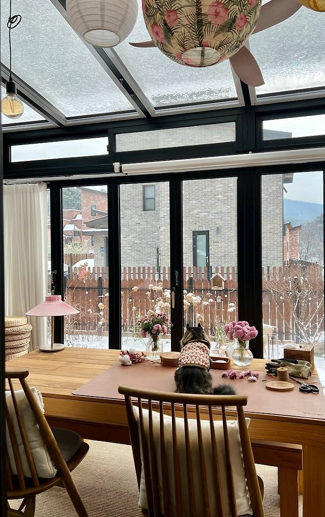이렇게 어떤 방향으로 앉아도 다채로운 풍경을 볼 수 있다는 점 때문에 식탁에 앉아서 이것저것 하는 시간이 즐겁더라구요.