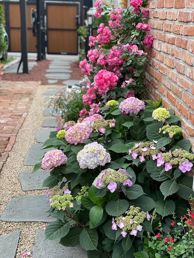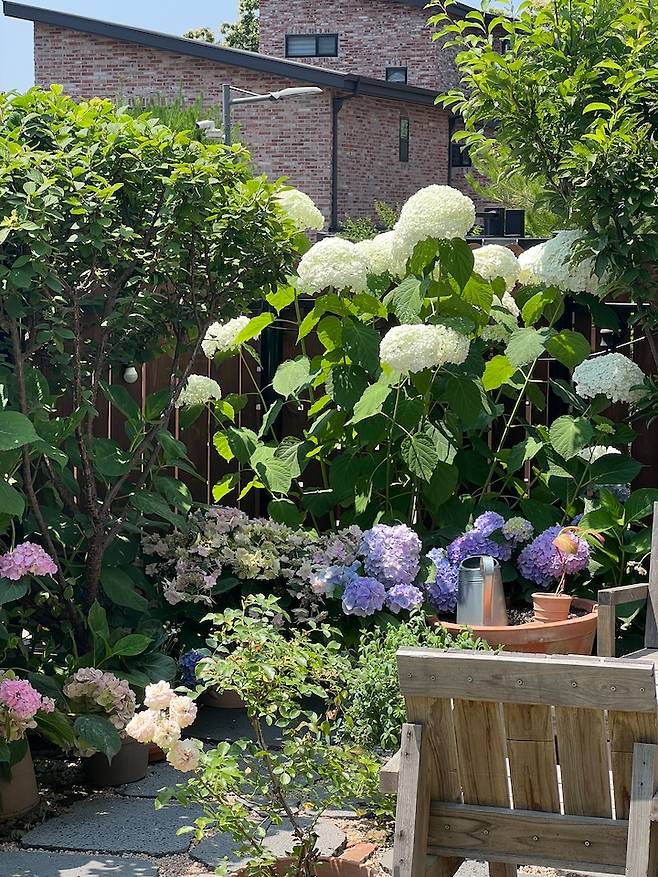 꽃중에 수국을 제일 좋아해서 수국을 많이 심었죠. 저의 매해 꽃 농사의 잘 되고, 못 됨의 기준은 수국이 얼마나 폈는지에 달렸어요. ㅎㅎ