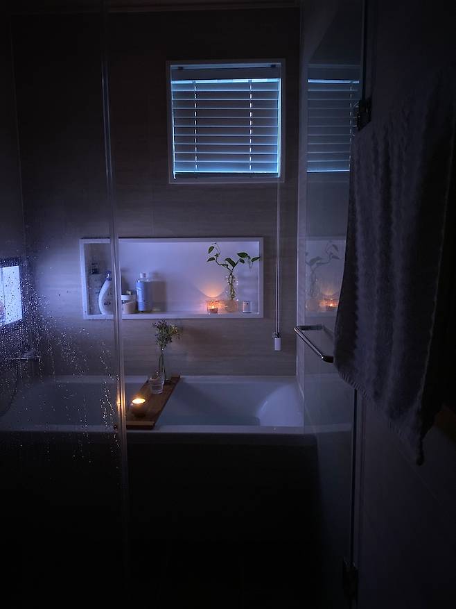 저희는 공간마다 티비가 있는게 좋아서 욕실에도 남편이 직접 티비를 만들어 주었어요. 그래서 반신욕을 즐기면서 좋아하는 프로그램을 보는 게를 겨울엔 큰 낙이에요.