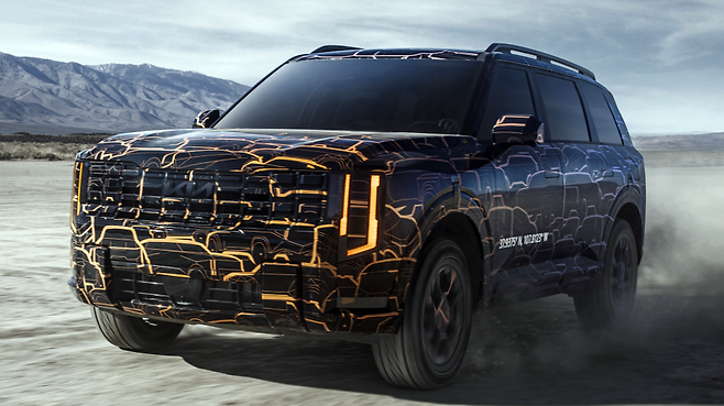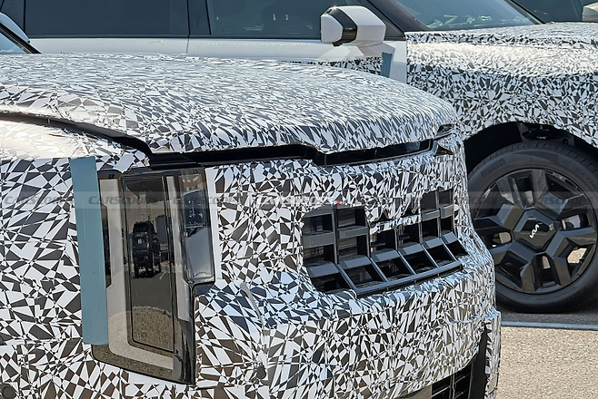 이번 2027년형 형텔루라이드는 "더 크고, 더 단단한 인상"을 키워드로 합니다. 기아가 공개한 티저 이미지 속차량은 위장막 아래에서도 각진 휀더 라인과 수직형 LED 라이트, 그리고 플러시 도어핸들이 눈에 띄었습니다. 전면부는 입체적인 '에그 크레이트(egg-crate)' 스타일의 그릴이 자리하며, 후면 역시 세로형 조명 그래픽으로 통일감을 주었습니다.
