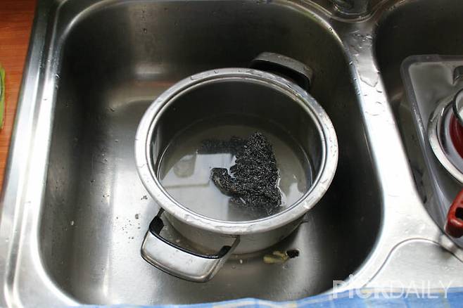 불을 끄고 조금 식힌 뒤 부드러운 수세미로 문질러 닦으면 탄 자국이 힘들이지 않아도 지워지는 걸 확인할 수 있다. 이 방법은 자극이 적고 냄비 표면도 손상시키지 않아 부담 없이 시도할 수 있다.
