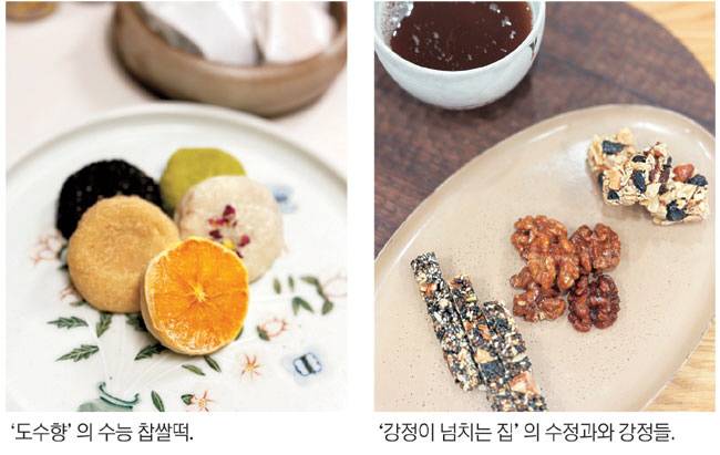 이북식 인절미가 고급스러운 브랜드의 패키지에 담겨 예약하지 않고서는 구하기 힘든 귀한 맛으로 변화되고, 한 입 거리의 약과도 오븐에 구워 만드는 레시피가 생겨날 정도로 현대 한국인들은 역시 먹는 일에는 진심으로 집중합니다. 어릴 적 할머니가 해주신 곶감이 통째로 들어간 수정과도, 깨알 같은 들깨가 알알이 박혀 딱딱한 식감을 가진 조그마한 강정도 옛맛과 섬세한 모양새를 살린 채 현대적으로 재해석되고 있습니다.