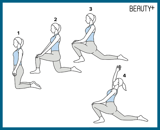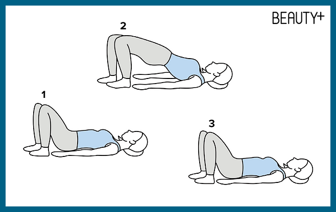 3 내쉬는 호흡에 엉덩이를 앞으로 지그시 민다.