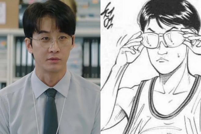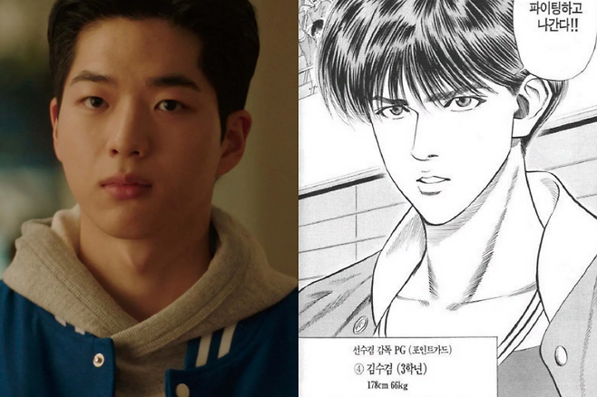 먼저 류승룡이 연기하는 주인공 김 부장은 김낙수와 영업1팀 대리 정성구는 산왕공고 선수들이다. 명세빈이 연기하는 김 부장의 아내 박하진은 원작 만화 속 농구 잡지 ‘주간 바스켓볼’ 기자와 이름이 같고, 차강윤이 맡은 김 부장의 아들 김수겸은 상양고의 선수 겸 감독 김수겸의 이름에서 따왔다. 극 중 스타트업 회사 대표 이정환은 해남고 주장, ACT 상무 백정태와 김 부장의 입사 동기 허태환은 능남고 선수들이고, 영업2팀장 도진우은 산왕공고 감독, 수겸의 첫사랑 이한나는 북산고 매니저 한나와 겹친다.