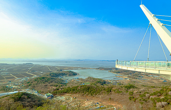 강화군 전역과 서해 바다, 심지어 북한 황해도 연백평야와 개성 송악산까지 한눈에 펼쳐지는 파노라마