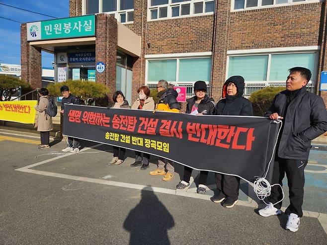 하지만 주민들은 설명회장인 장곡면행정복지센터 앞에서 '송전탑 결사 반대' 현수막을 펼쳤다.