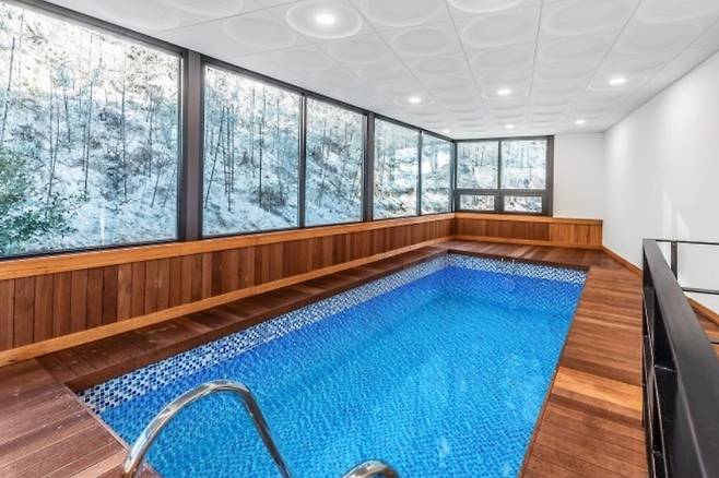 1층에는 넓은 수영장이 있어 언제든지 수영할 수 있는데요. 스파, 바비큐, 노래방 시설까지 갖추고 있습니다.