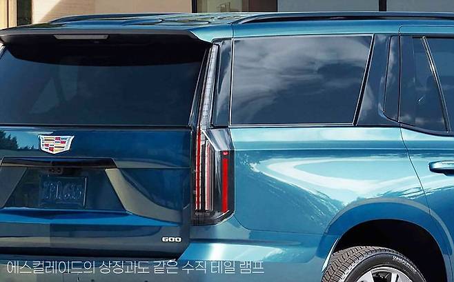 에스컬레이드의 디자인에서 대표적 디테일 하나는 바로 D-필러를 덮고 있는 수직형 테일 램프일 것입니다. 이 디자인은 마치 에스컬레이드의 시그니처 같은 디자인 요소일 것입니다.