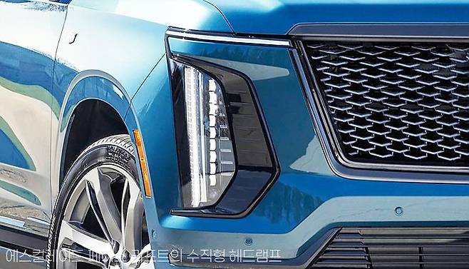 특히 크게 변화된 건 헤드램프의 디자인입니다. 이전에는 수평 형태의 헤드램프가 높게 달려있었지만, 페이스 리프트 모델에서는 수평 위치에는 주간주행등 일부가 가늘게 들어가 있고, 헤드램프는 이전의 수직 주간주행등과 같이 배치됐습니다. 수직 위치의 헤드램프가 캐딜락의 이미지와 더 잘 어울리는 느낌이기도 합니다.